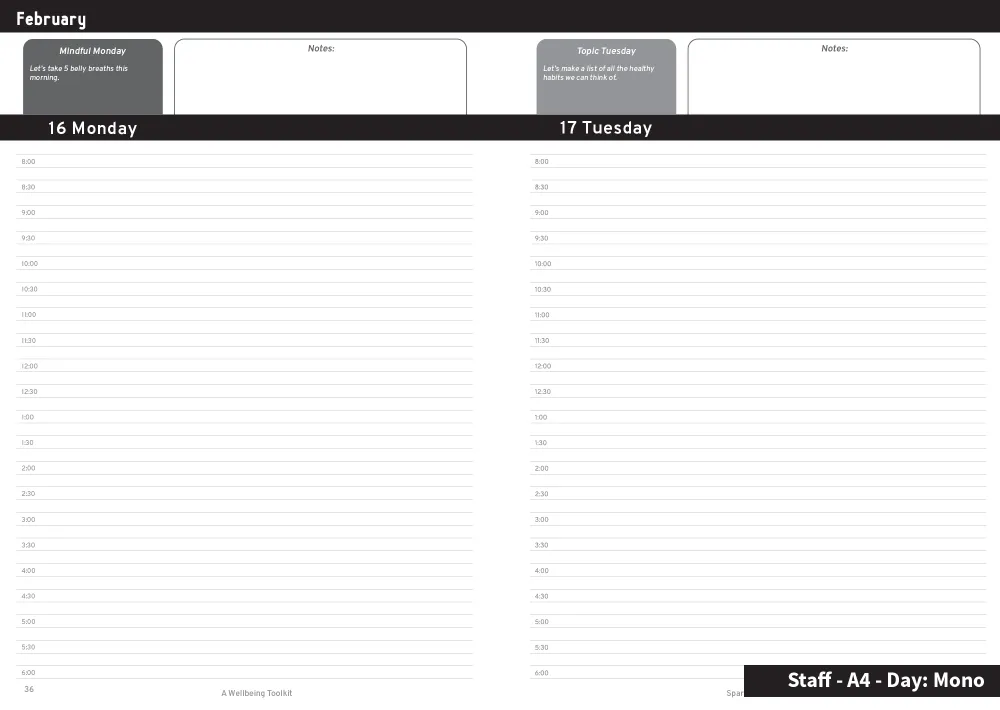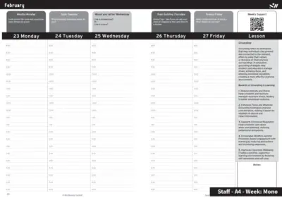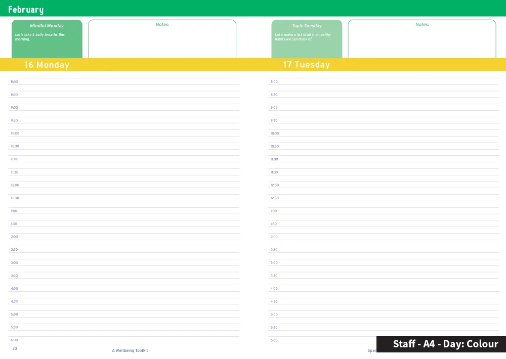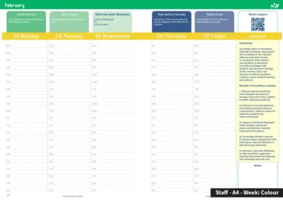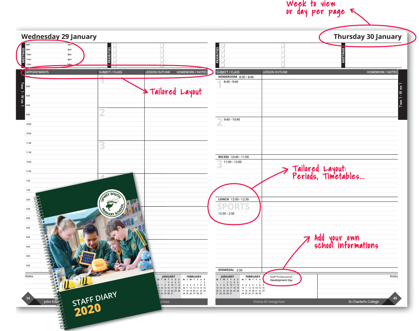 - Layout Diary Section 2 pages per week of activities and lessons Aligns to the Staff Diaries