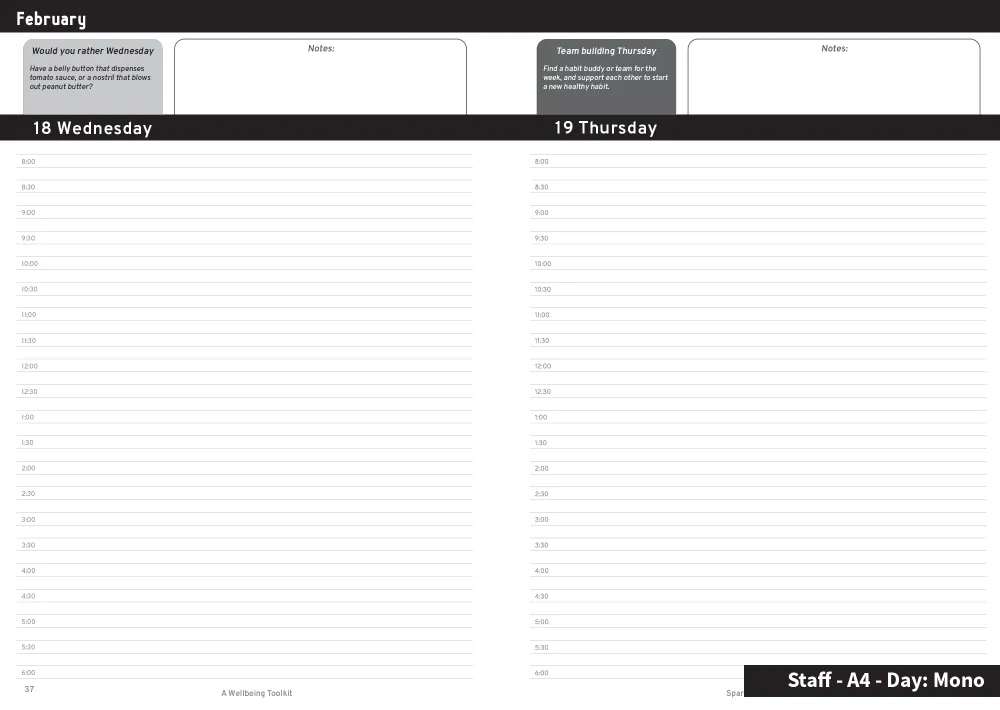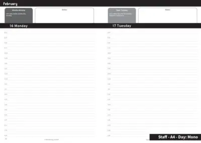 We have preprinted standard layouts or can print fully customised layouts. Below is an overview of just some of the features of our diary range.