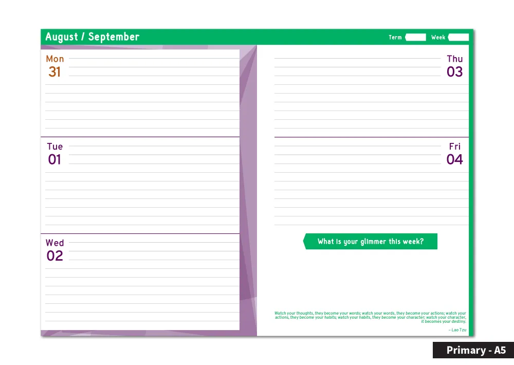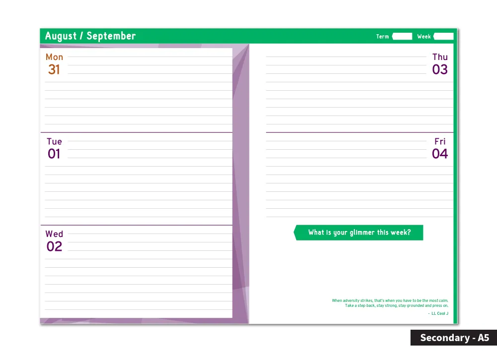 Student Diaries specifically tailored to secondary students offers a more mature and reflective wellbeing experience tailored to adolescents.