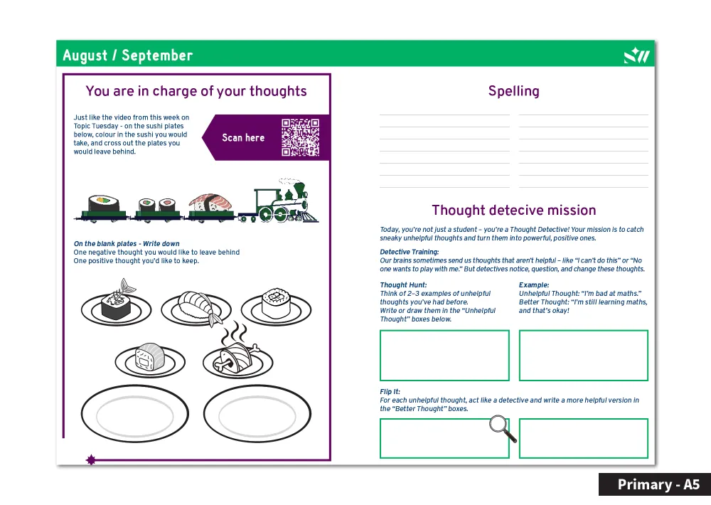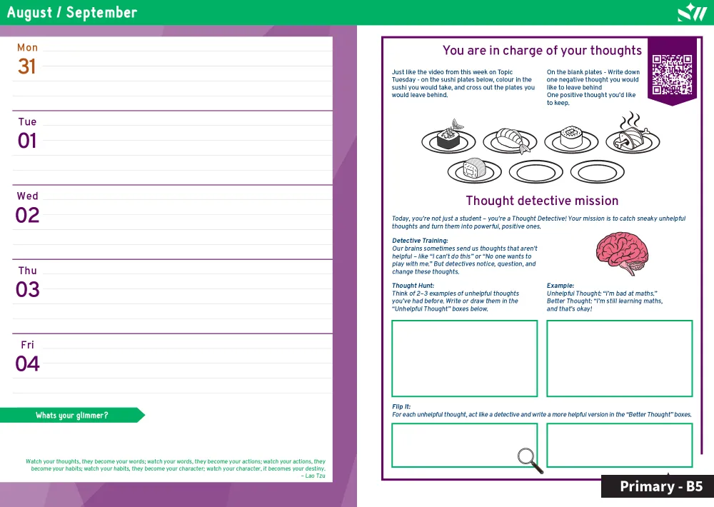Primary Student Diaries specifically tailored to younger learners from 6 to 12 years of age to explore their emotions, build resilience, and develop positive habits.