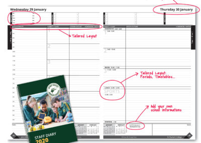 Our customisable student diaries are designed to suit the unique needs of every school. With the flexibility to choose your preferred diary size, binding type, and internal layout, you can create a diary that perfectly complements your school’s style and structure.